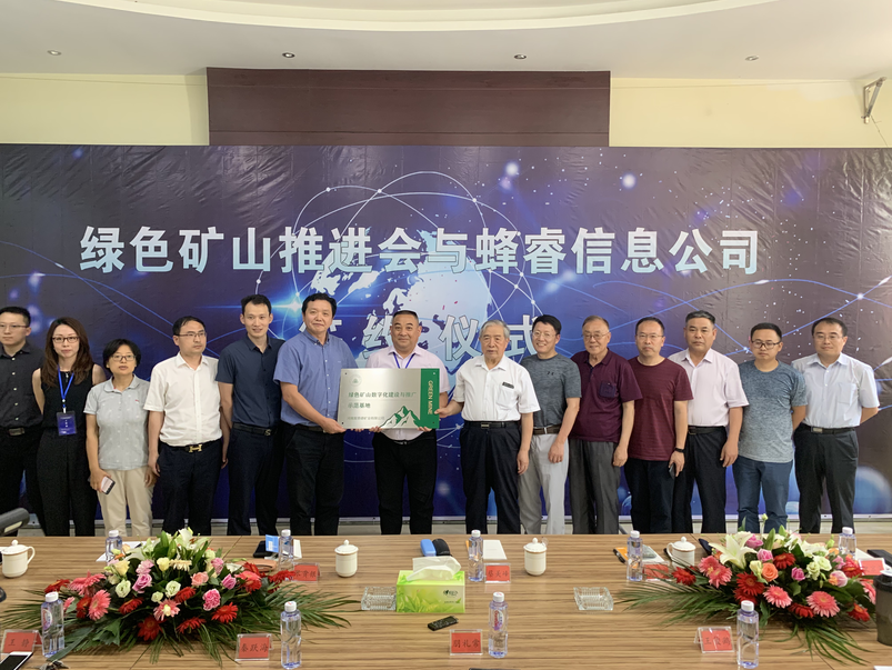 交流会上,绿色矿山推进委员会授予河南发恩德公司“绿色矿山数字化建设与推广示范基地”的荣誉,并与北京蜂睿信息科技有限公司签订合作协议。