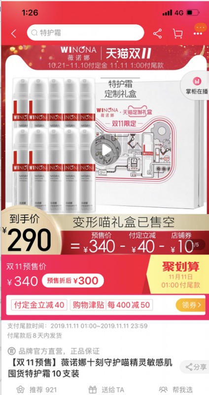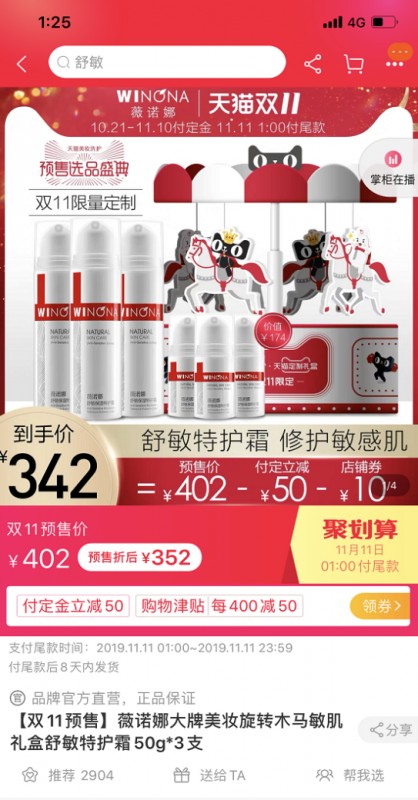“王牌定制款+明星货品”强强组合,搭配社交平台“双11购买攻略”种草,薇诺娜实现了销量、流量双引爆。销售数据显示,仅在预售期间,“旋转木马礼盒”便狂销14万套;明星单品舒敏保湿特护霜定制礼盒,在10月底便实现预售10万瓶,为万千敏感肌肤用户带来超值囤货福利,在深度和广度上为双11销售积累了“口碑火药”。