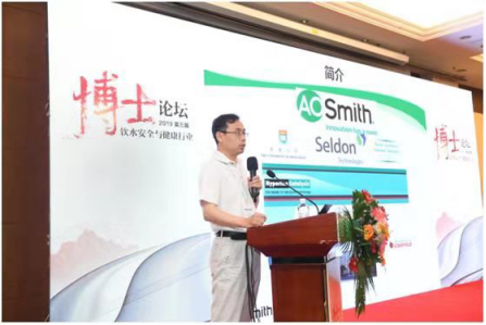 美国国际管道暖通器械协会水处理研发中心总监丁鹏发言。他向与会嘉宾介绍了美国IAPMO协会的资源和价值,同时分享了协会收集到的净水器市场数据和现状。