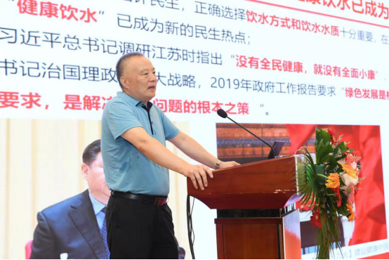 火箭军后勤科学技术研究院所长/院士侯立安发表演讲《新科技革命助力健康饮水保障的绿色发展》。他重点讲了健康饮水究竟怎么才能保障,靠什么来保障,以及如何实现健康饮水可持续发展。