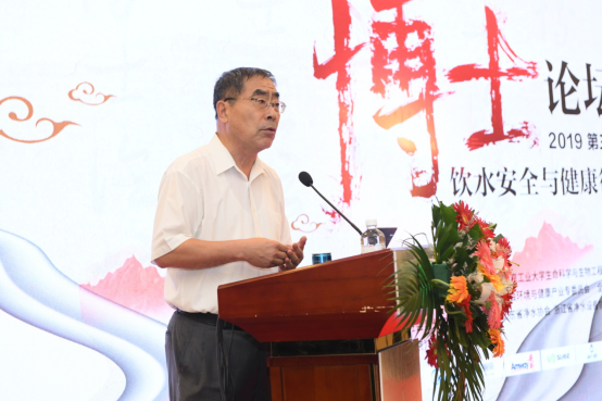 北京工业大学校长柳贡慧致辞,希望本次大会能够促成饮水安全和健康领域更多交流合作,也希望北京工业大学能为行业搭建友谊、合作、交流的桥梁。