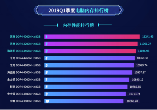 鲁大师近日发布了2019年Q1季度PC端内存性能排行榜,芝奇DDR4高频内存条大获全胜,占据了榜单40%的位置。