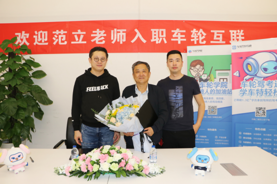 随着步入互联网下半场,互联网与各行业深度融合的产业也展现出新的发展形态。驾培行业作为传统行业更是运用互联网信息技术、数据实现了效率提高、结构优化、服务转型等新生态,并呈现出里程碑式的发展。正值驾培行业处于互联网化转型升级、机遇与挑战并存的关键发展阶段,车轮深耕行业现状赋能驾培教学场景,4月22日在北京特聘原中国道路运输协会驾驶员工作委员会主任范立先生作为车轮的荣誉顾问兼车轮学院首席导师,在车轮准备的隆重欢迎仪式下由车轮副总裁崔健先生为范立老师现场授予聘书,特邀范立老师与车轮一起助力驾培行业服务转型升级,推动驾培行业高质量发展为车轮学院增添专业性和权威性。车轮副总裁崔健代表公司与范立老师进行签约,完成签约仪式后车轮CMO赵凯与车轮副总裁崔健代表车轮全体同仁对范立老师的加盟表示欢迎并进行了合影留念。